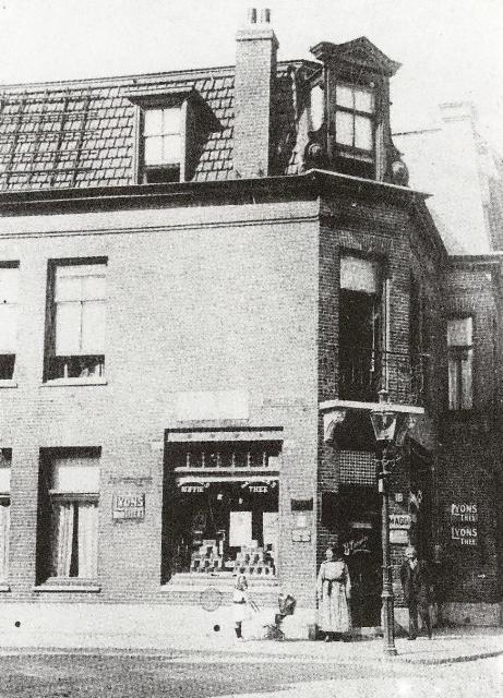 Wat kan een stad toch veranderen. Soms is het moeilijk, om een oud pand te herkennen. In de loop der jaren wordt er vaak veel aan veranderd. Hier een foto van de winkel van kruidenier Termeer, hoek Velserstraat/Aelbertsbergstraat. De foto dateert uit september 1917. Er werd Van Nelle koffie en thee verkocht en producten van Lyons. Ook de naam Maggi treffen we aan op een bordje naast de deur. Op de hoek van de straat staat een fraaie straatlantaarn. Thans is er een architectenburo gevestigd, genaamd vrp architecten bna.